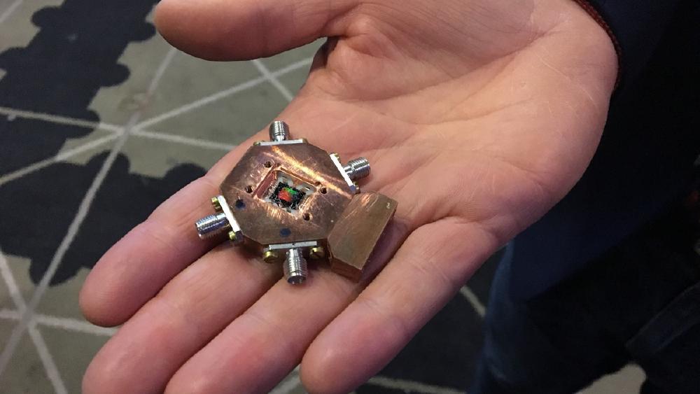 A D-Wave quantum processor wafer. Fabricating these arrays at scale requires constant calibration cycles - the kind of repetitive, data-heavy process that vision-language models can automate.